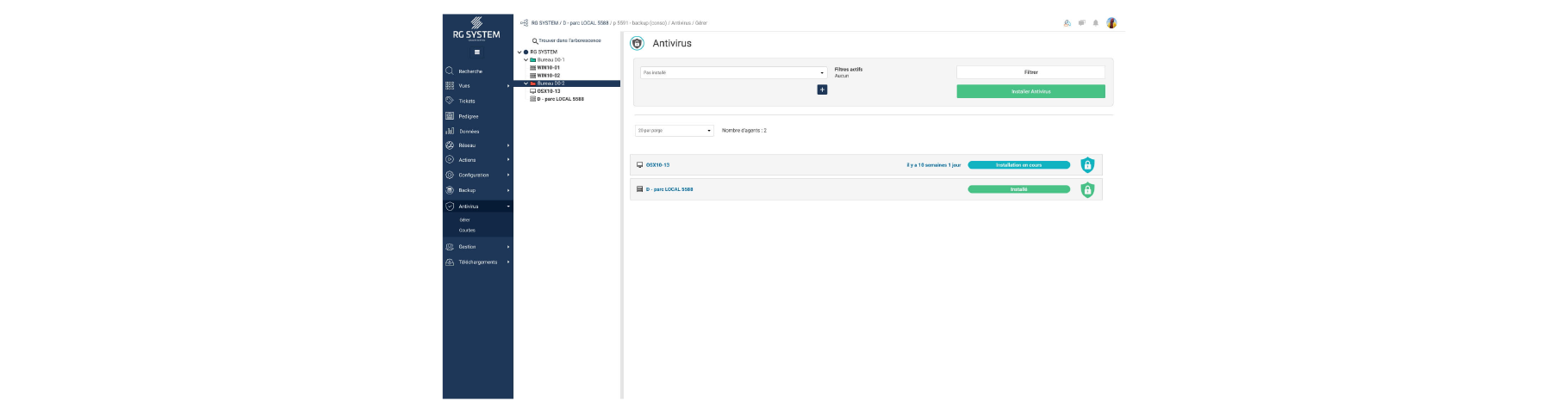 RG System's Cybersecurity module is the solution for providing in-depth security for managed IT infrastructures. Thanks to the native integration of Bitdefender GravityZone technology (world leader in antivirus) and advanced detection bricks (EDR, ATS, MDR), you benefit from powerful, centralised and automated protection.