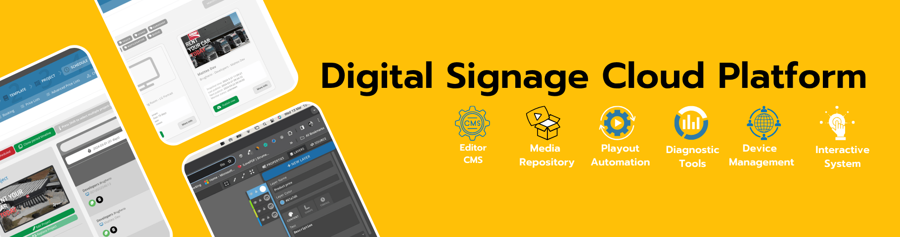 The Voome platform includes essential tools for comprehensive Digital Signage management: